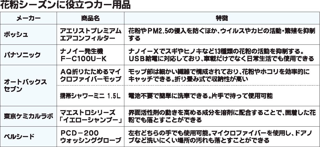 例年より早く、本格的な花粉シーズンが到来している。くしゃみや目のかすみを引き起こす花粉症は、運転時の集中力の低下につながる恐れがある。このため、カー用品店の店頭では、車内への花粉の侵入や飛散を防ぐ対策用品に注目するユーザーが増えている。花...