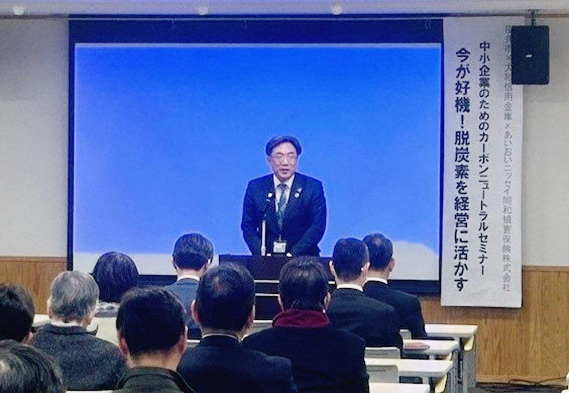 【奈良】あいおいニッセイ同和損害保険奈良支店(藤井亮一朗支店長)は、桜井市と大和信用金庫(中村正徳理事長)と合同で「中小企業のためのカーボンニュートラルセミナー」を開催した。中小企業の事例を用いて、脱炭素の基礎知識から地域経済への影響など...