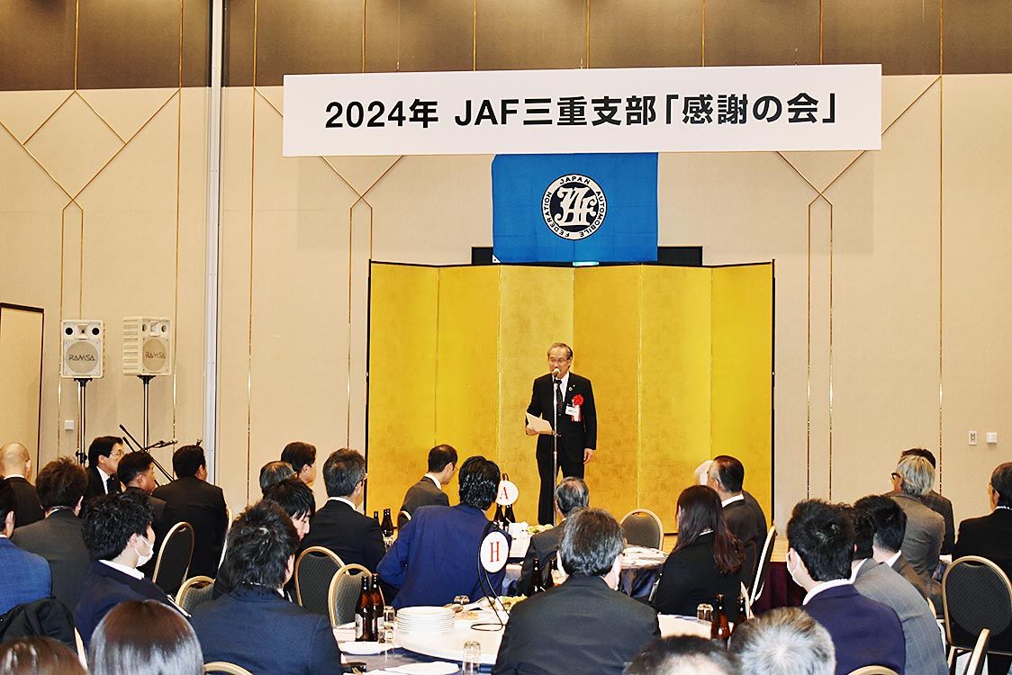 【津】日本自動車連盟(JAF)三重支部(川喜田久支部長)は四日市市内のホテルで「2024年JAF三重支部感謝の会」を開催した。昨年、JAFの会員増加に貢献した企業と個人に感謝の意を伝えるもので、対象者や企業の代表者らが出席した。 席上、川...