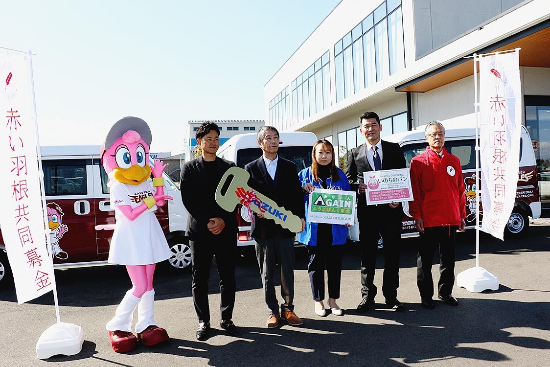 【仙台】赤い羽根共同募金と楽天野球団は、宮城県内でフードバンク事業を行っている3団体にラッピング車両(スズキ「エブリイ」)を各1台寄贈した。 富谷市で行われた贈呈式には、宮城県共同募金会の宮川耕一会長、楽天イーグルスの銀次アンバサダー、3...