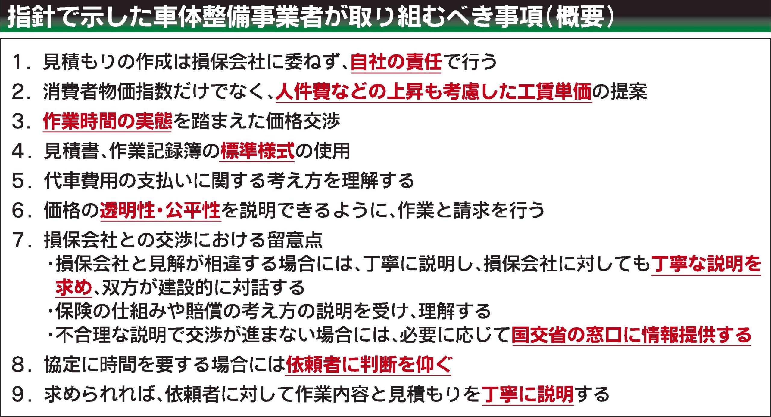国土交通省は、損害保険会社との価格交渉に関する車体整備事業者向けの指針をまとめた。車体整備事業者の賃上げや人材確保に向けた施策の一環だ。4月以降には価格決定に用いる「標準作業時間」について、第三者的な立場から調査に入る。また、金融庁や中小...