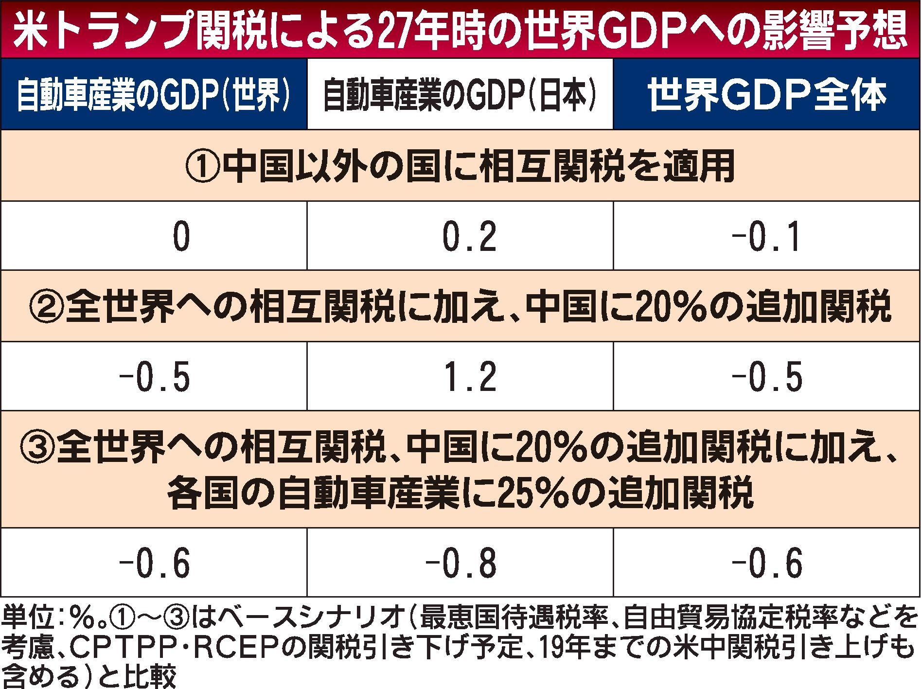 日本貿易振興機構(ジェトロ)アジア経済研究所によると、米政府による追加関税の影響で、2027年には世界の自動車産業のGDP(国内総生産)が最大で0.6%下がる見込み。対米自動車・部品輸出が年間で約7兆円にもなる日本に限ると0.8%減と影響...