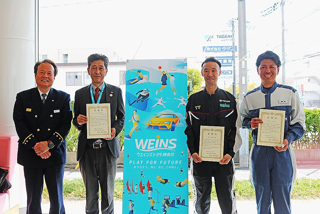 【横浜】ウエインズトヨタ神奈川(宮原漢二社長)の新車店舗「池辺店」(東出豪店長、横浜市都筑区)前の路上で発生した車両火災事故で同店の自動車整備士らが消火活動を行ったことに対し、横浜市都筑消防署(増山敬太署長)から感謝状が贈られた。 この事...