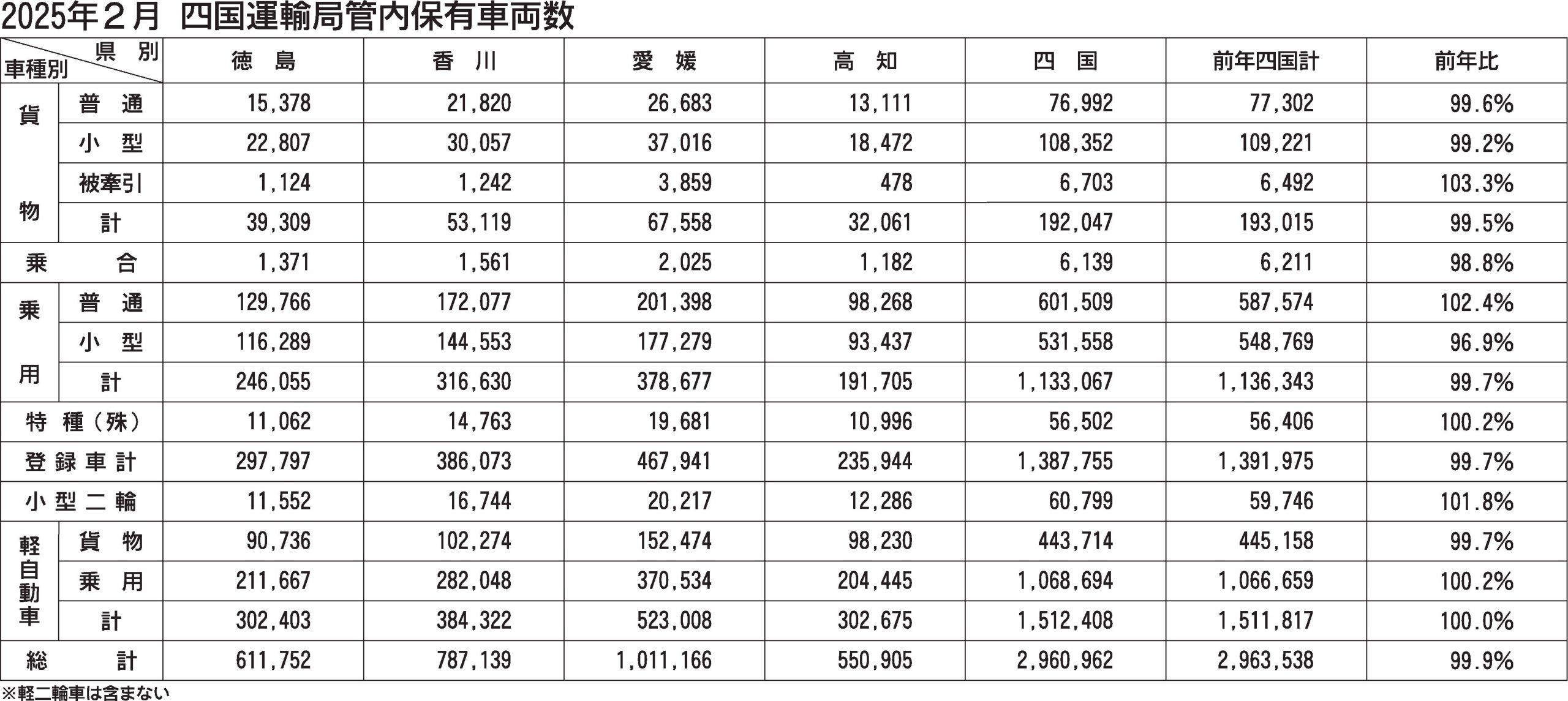 〈2025年2月 四国運輸局管内保有車両数〉