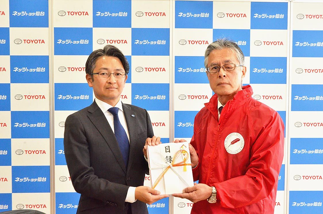 ネッツトヨタ仙台(三浦勇治社長)は宮城県共同募金会(宮川耕一会長)へ寄付金を贈呈した。同社の日の出店で寄贈式を行い、守川雷太副社長が宮川会長へ100万円の目録を手渡した。浄財は、店舗で実施するチャリティーイベントや飲料自動販売機の売上を原...