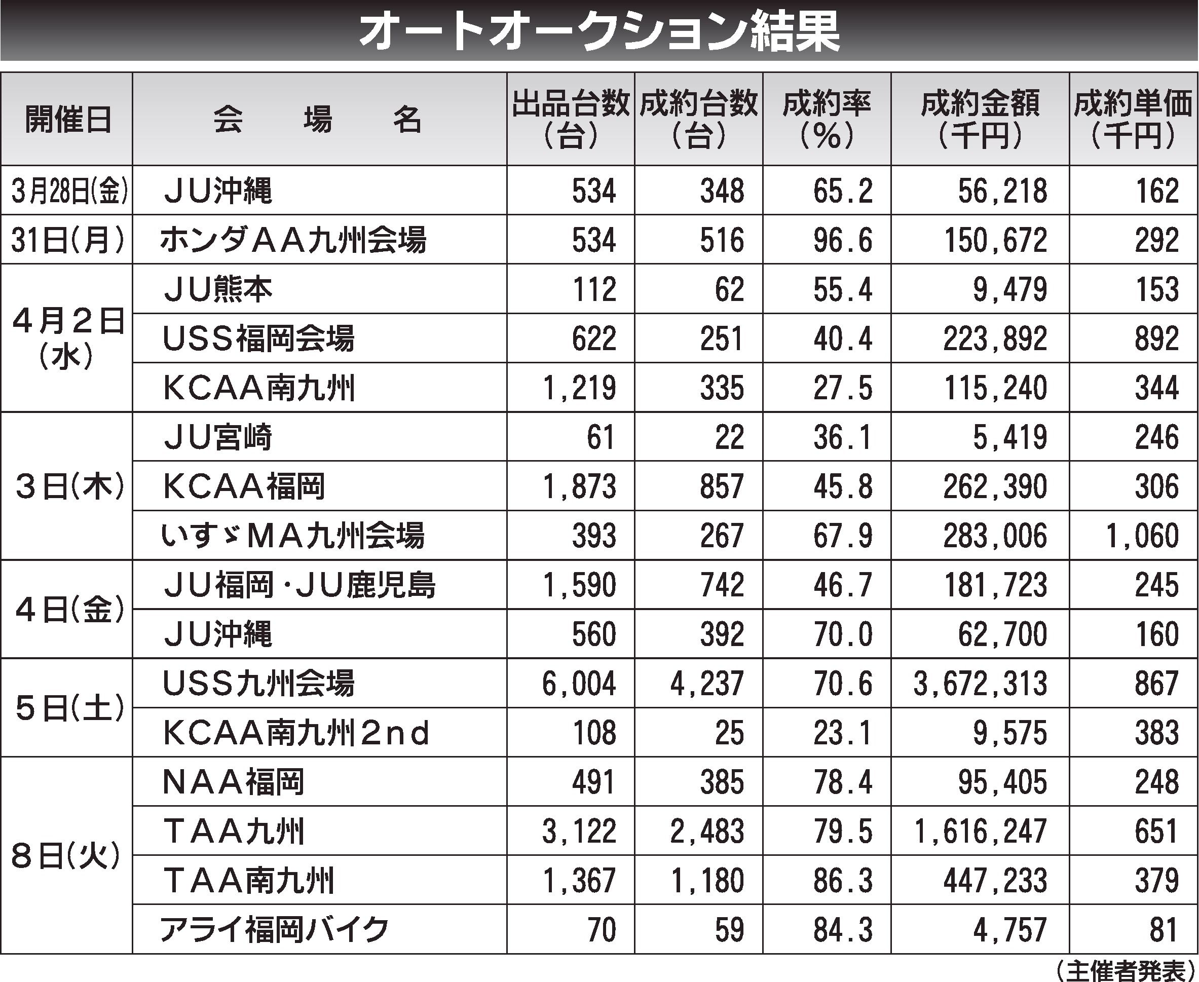 〈オートオークション結果〉九州地区 2025/3/28~4/8
