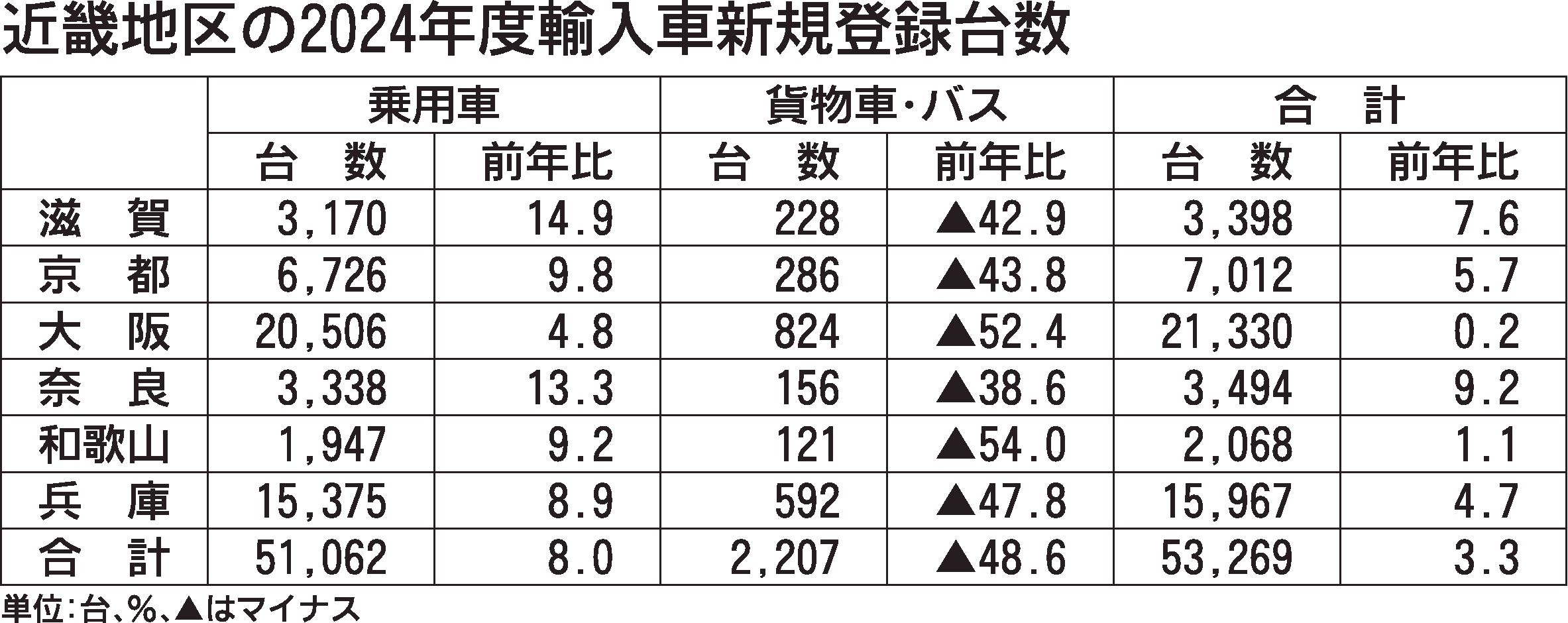 日本自動車輸入組合(JAIA)の発表によると、2024年度(4月~25年3月)の近畿地区の輸入車新規登録台数(外国メーカー車と日本メーカー車)は、前年度比3.3%増の5万3269台と3年ぶりにプラスに転じた。外国メーカー車は物価高などの影...