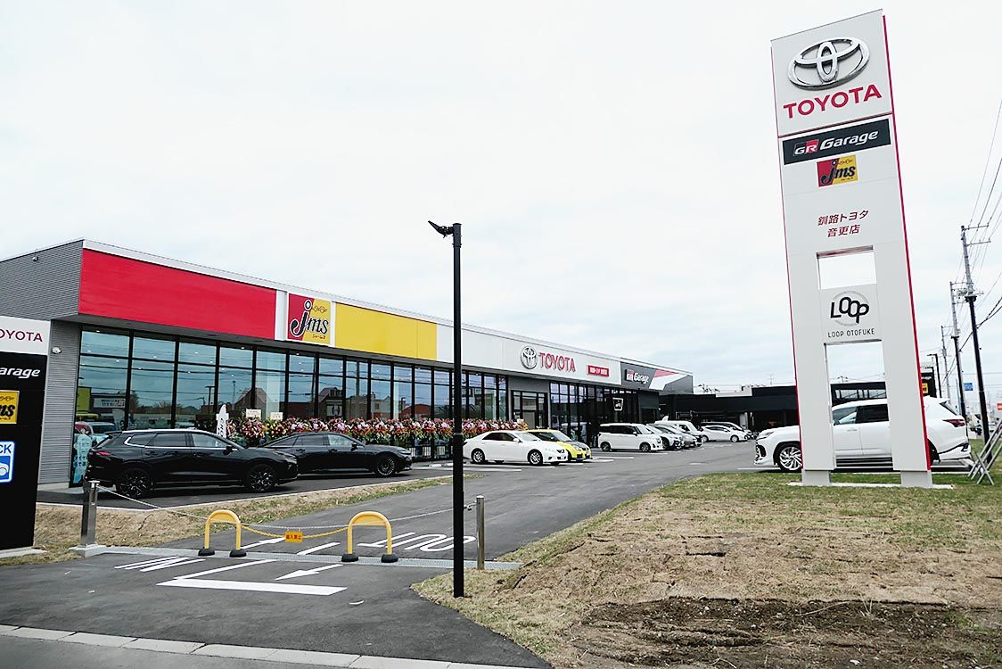 【音更】釧路トヨタ(坂根篤社長)は12日、新車拠点「音更店」と「GRガレージ音更店」、カー用品店「ジェームス音更店」の3店舗で構成される全国初の複合型拠点「LOOP OTOHUKE(ループ音更)」をオープンした=写真。道東地区初のGRガレ...