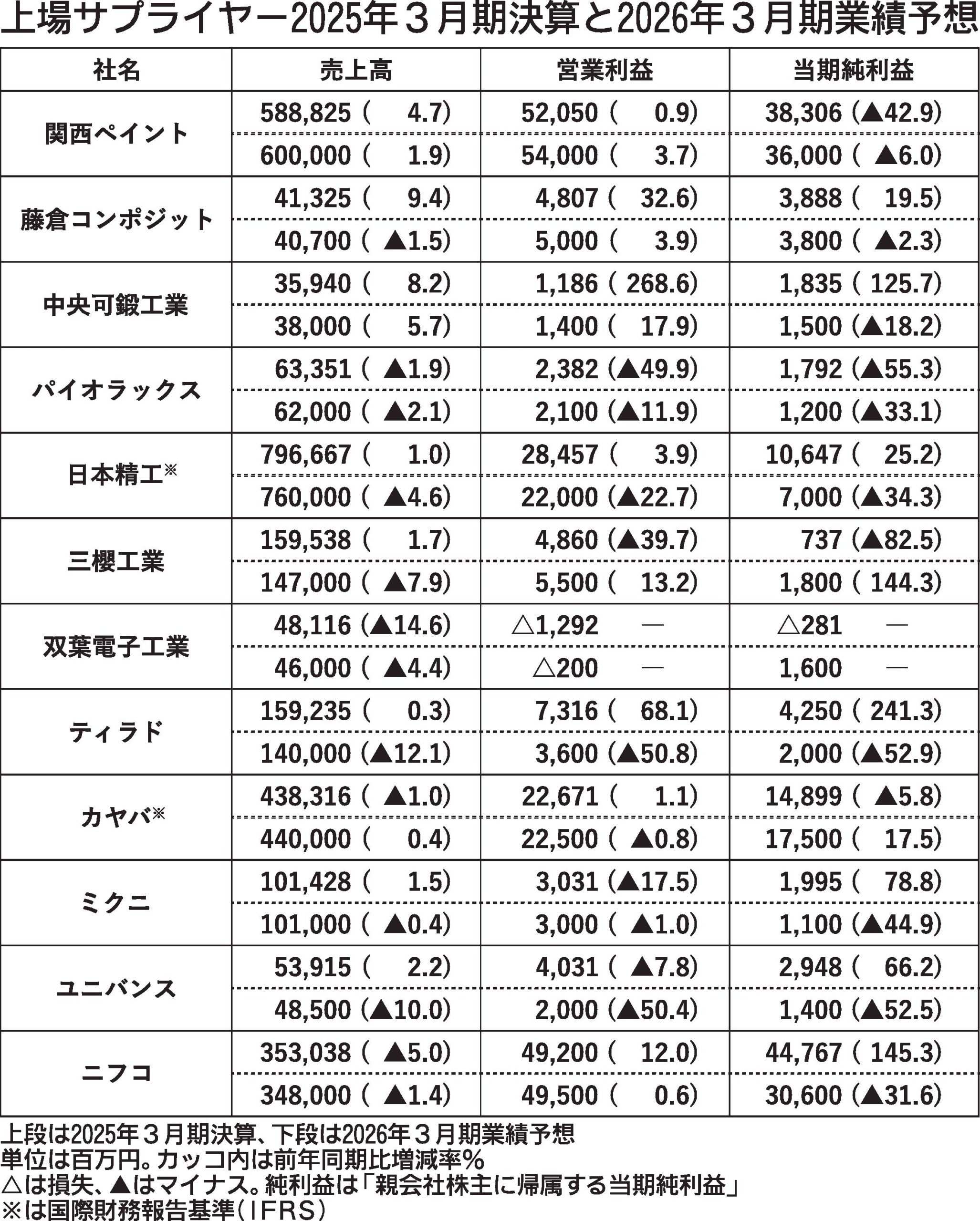 〈上場サプライヤー2025年3月期決算と2026年3月期業績予想〉(5/26付)