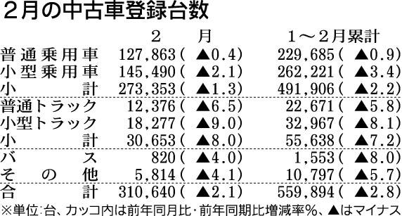 2011年2月中古車登録、2.1%減の31万台