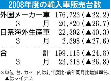 2008年度輸入車新規登録台数、16年ぶり20万台割れ