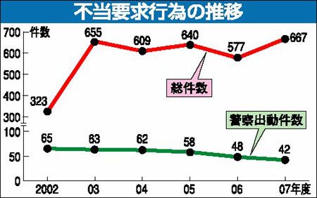 自動車検査独立行政法人(自動車検査法人)は、2007年度中に全国の自動車検査場で発生した不当要求行為を発表した。前年に比べ90件増え、667件と自動車検査法人発足以来、最高となった。厳正な検査業務を徹底した結果、不合格となった利用者が、し...