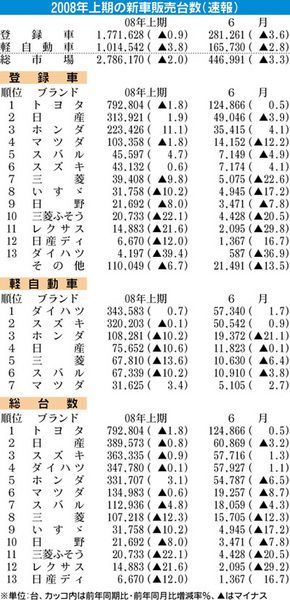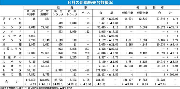 国内縮小の歯止めに向け、下期が正念場に―。日本自動車販売協会連合会(自販連、天野洋一会長)と全国軽自動車協会連合会(全軽自協、村田浩平会長)が1日発表した今年上期(1~6月)の新車販売台数は、前年同期比2.0%減の278万6170台となっ...