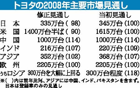 トヨタ自動車、2008年計画で世界販売を35万台下方修正