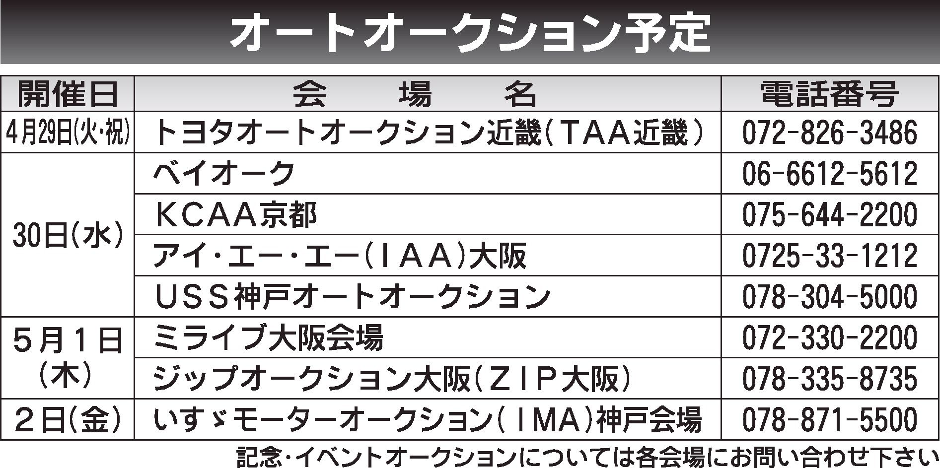 〈オートオークション予定〉近畿地区 2025/4/29~5/2