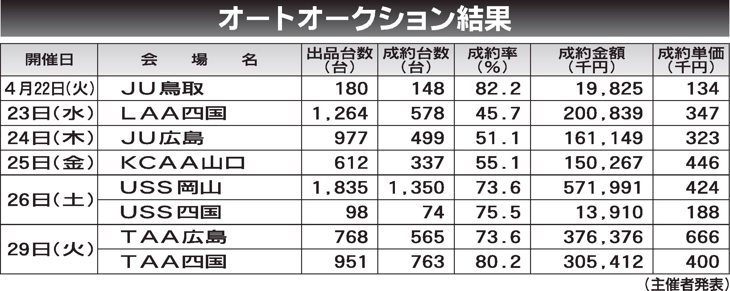 〈オートオークション結果〉中四国地区 2025/4/22~29