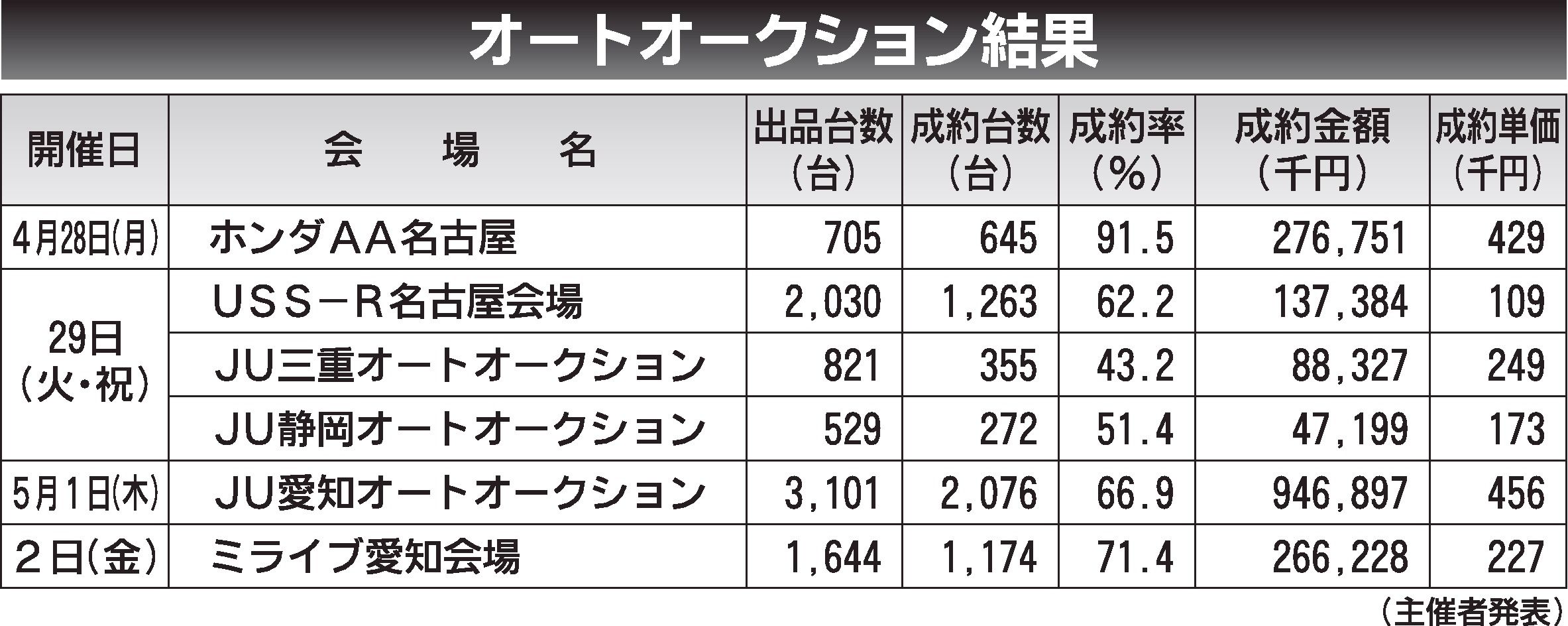 〈オートオークション結果〉中部地区 2025/4/30~5/2