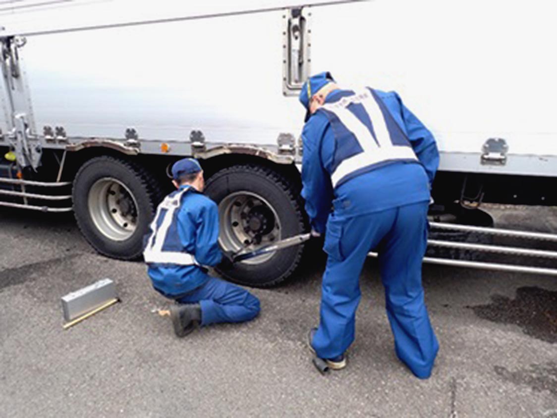 北海道運輸局は4月23日、札幌市厚別区の札幌トラックステーションで大型トラックのタイヤ街頭検査を実施した。駐車中のトラック12台を点検し、1台でホイール・ナットの緩みを確認。トルクレンチで締め付けた上で、早急な点検を指示した。春のタイヤ交...