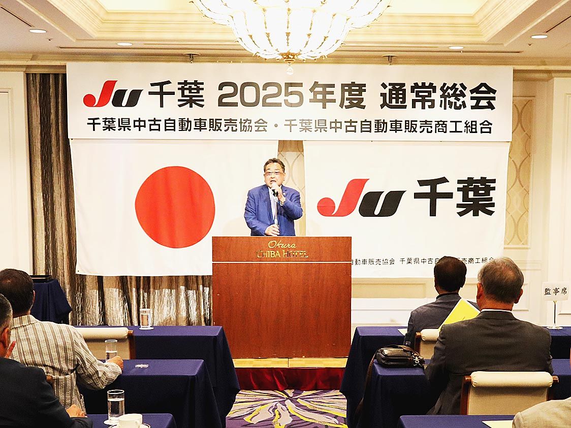 【千葉】千葉県中古自動車販売協会・同商工組合(JU千葉)は、千葉市内のホテルで2025年度の通常総会と理事会を開いた。総会は24年度の事業報告書と決算書、25年度の事業計画書案と収支予算書案を全会一致で了承。任期満了に伴う役員改選で、千﨑...