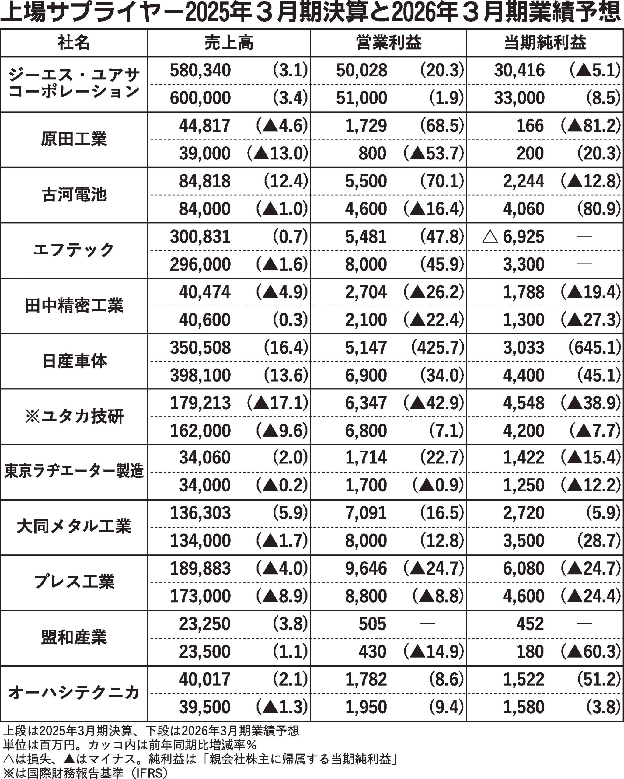 〈上場サプライヤー2025年3月期決算と2026年3月期業績予想〉(5/26付)