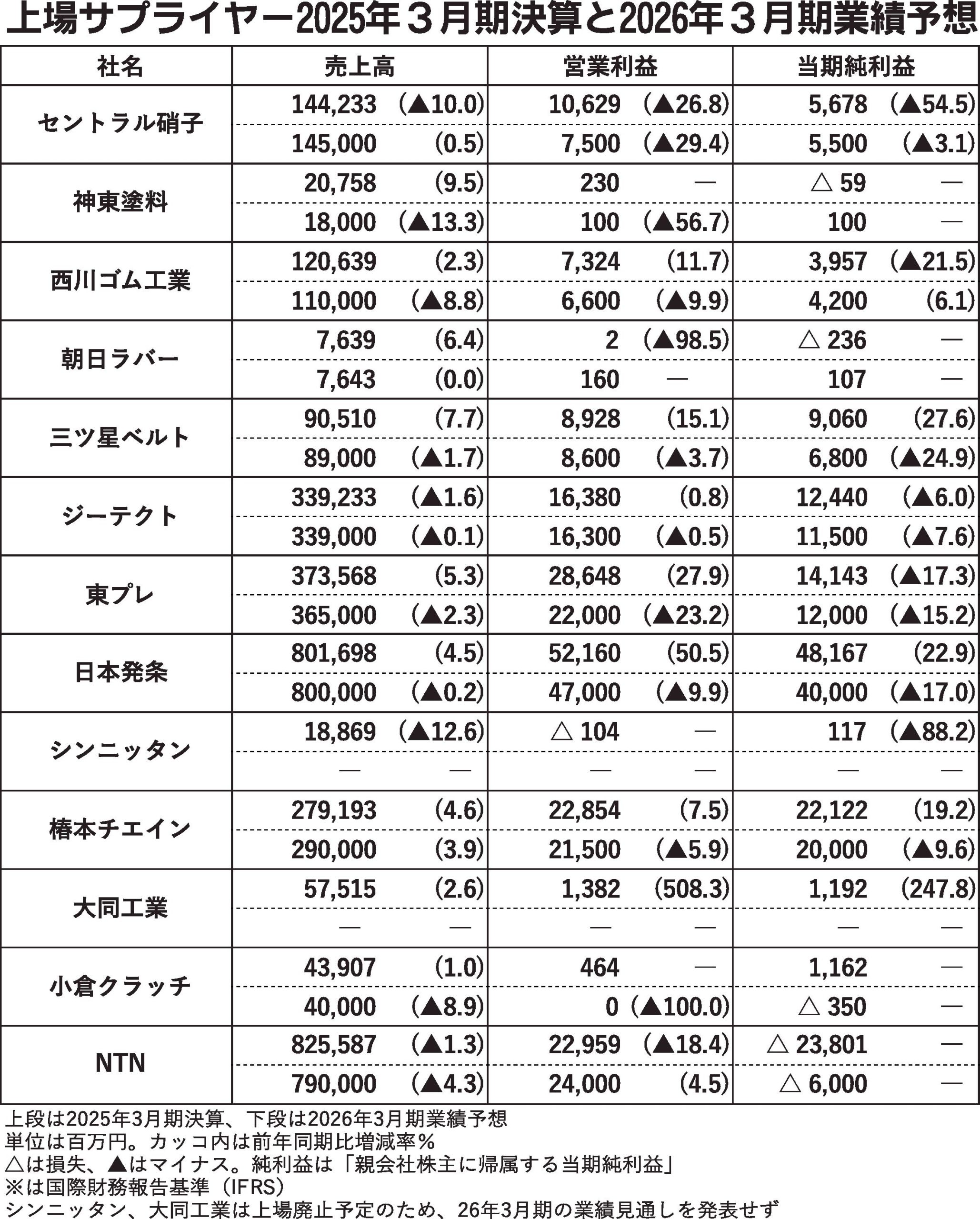 〈上場サプライヤー2025年3月期決算と2026年3月期業績予想〉(5/26付)