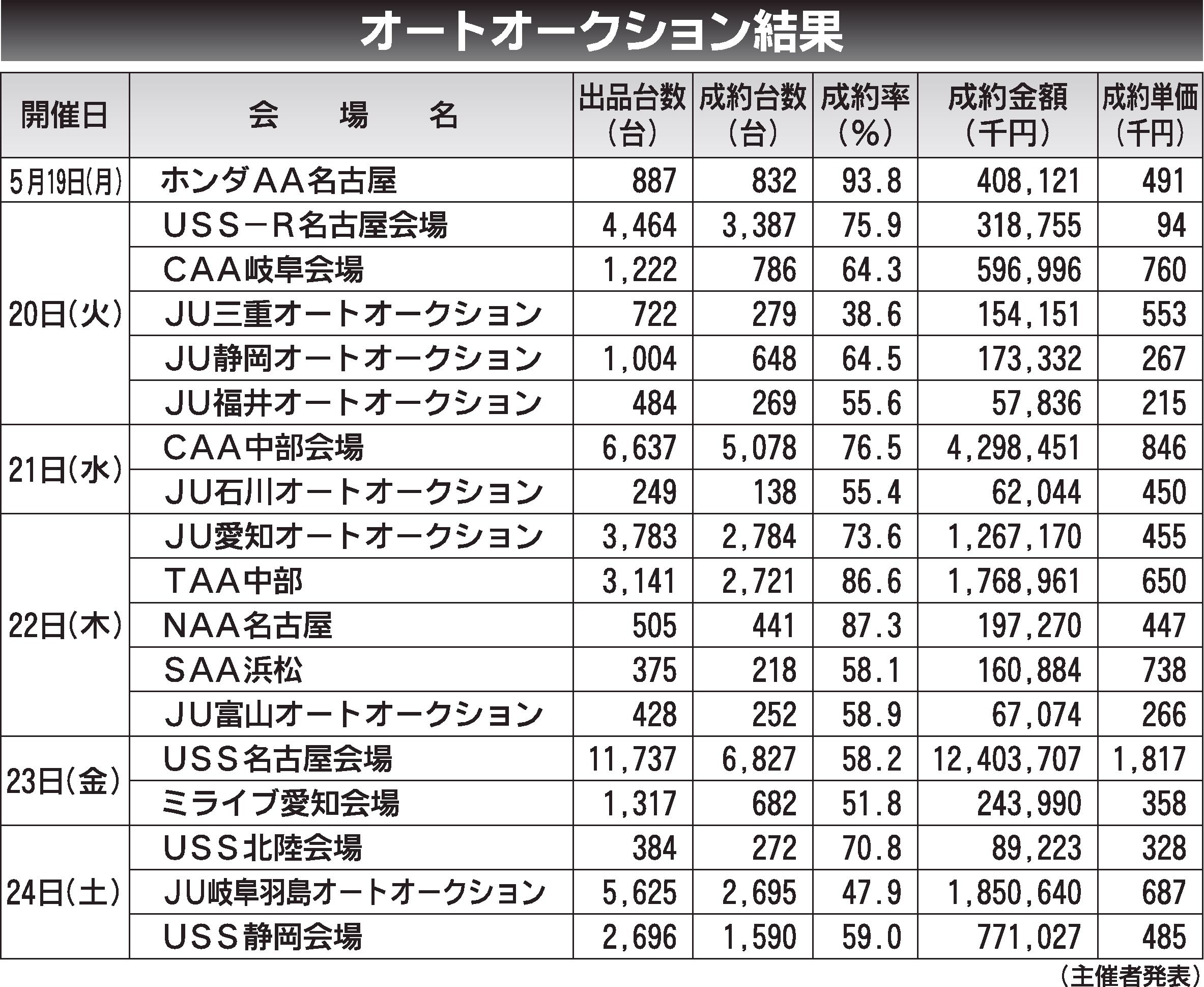 〈オートオークション結果〉中部地区 2025/5/19~24