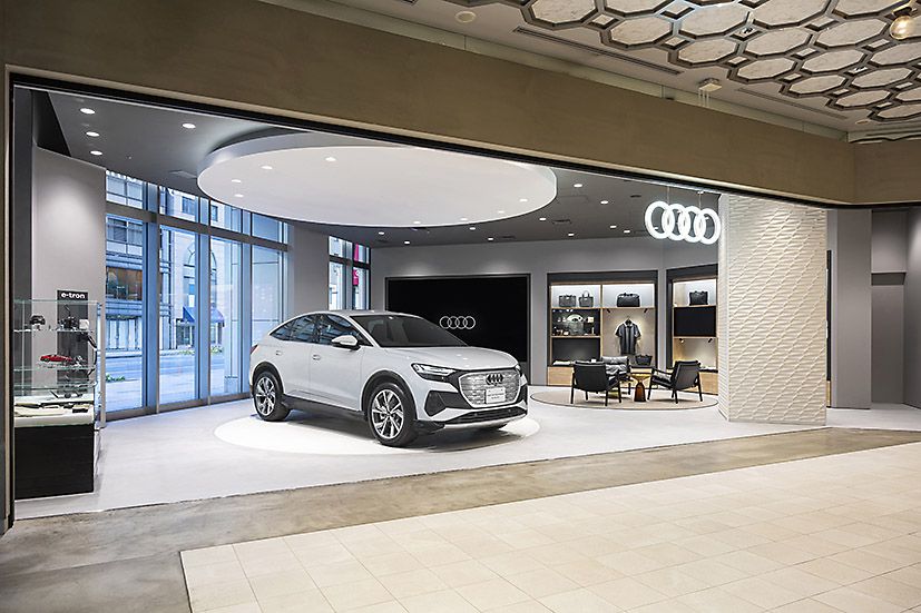 アウディシティ日本橋は、新車を売らないブランド発信拠点として、4月18日に日本橋髙島屋S.C.新館1階にオープン。2024年12月にオープンした「アウディシティ銀座」(東京都中央区)に続いて2店舗目となる。