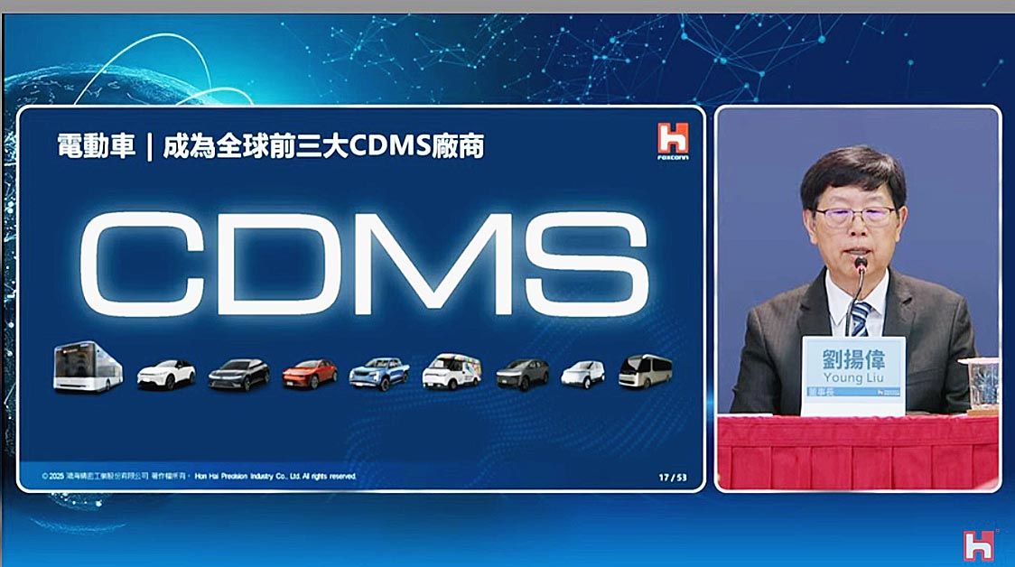 台湾・鴻海(ホンハイ)精密工業(フォックスコン)の株主総会が28日にあり、劉揚偉会長は、日本の自動車メーカーへの電気自動車(EV)供給について「三菱自動車に続いて、2社目を間もなく発表できる」との見方を示した。 同社は、EVの設計から製造...