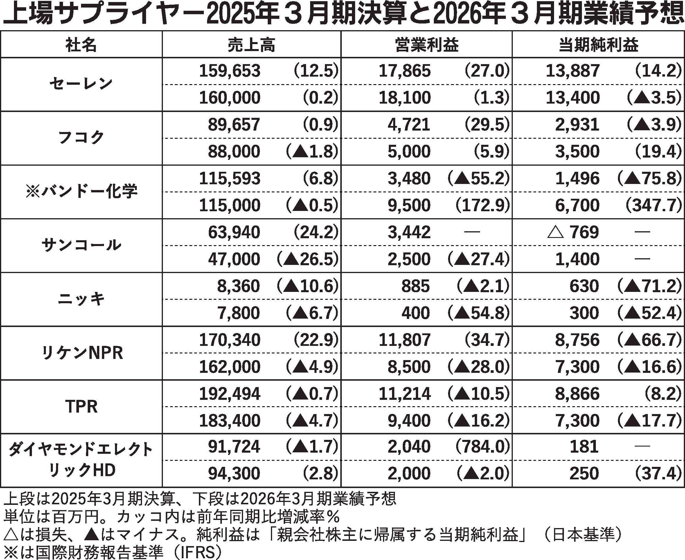 〈上場サプライヤー2025年3月期決算と2026年3月期業績予想〉(6/2付)