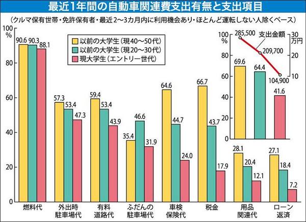日本自動車工業会は、乗用車と小型・軽トラック、普通トラックの市場動向調査を行った。4回にわけて同調査結果を紹介する。 (一部既報) 〈エントリー世代(現役大学生)にとってのクルマ〉 現在の免許取得率は66・9%。取得意向者を含めた潜在的な...