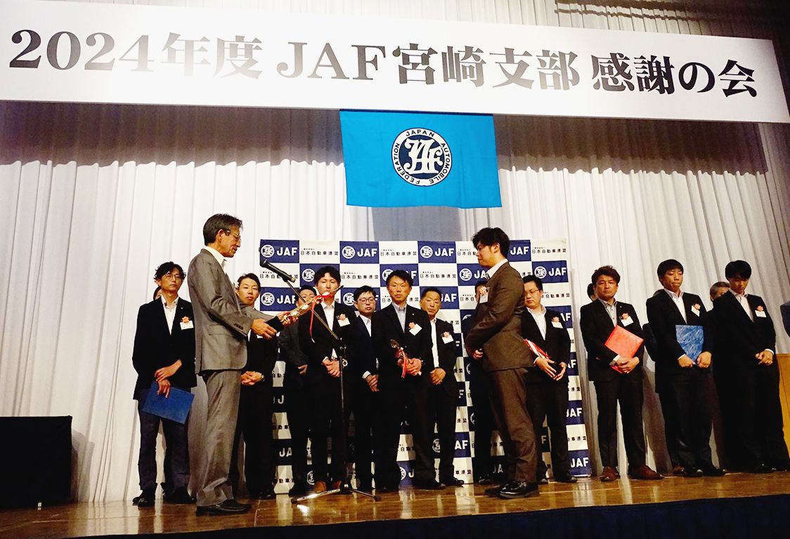 【宮崎】日本自動車連盟(JAF)宮崎支部(百野正剛支部長)は宮崎市内のホテルで「2024年度JAF宮崎支部感謝の会」を開催し、JAFの会員獲得に貢献した企業やスタッフに感謝状を贈った。総合優秀販売店賞1位には南九州マツダが輝き、ベストスタ...