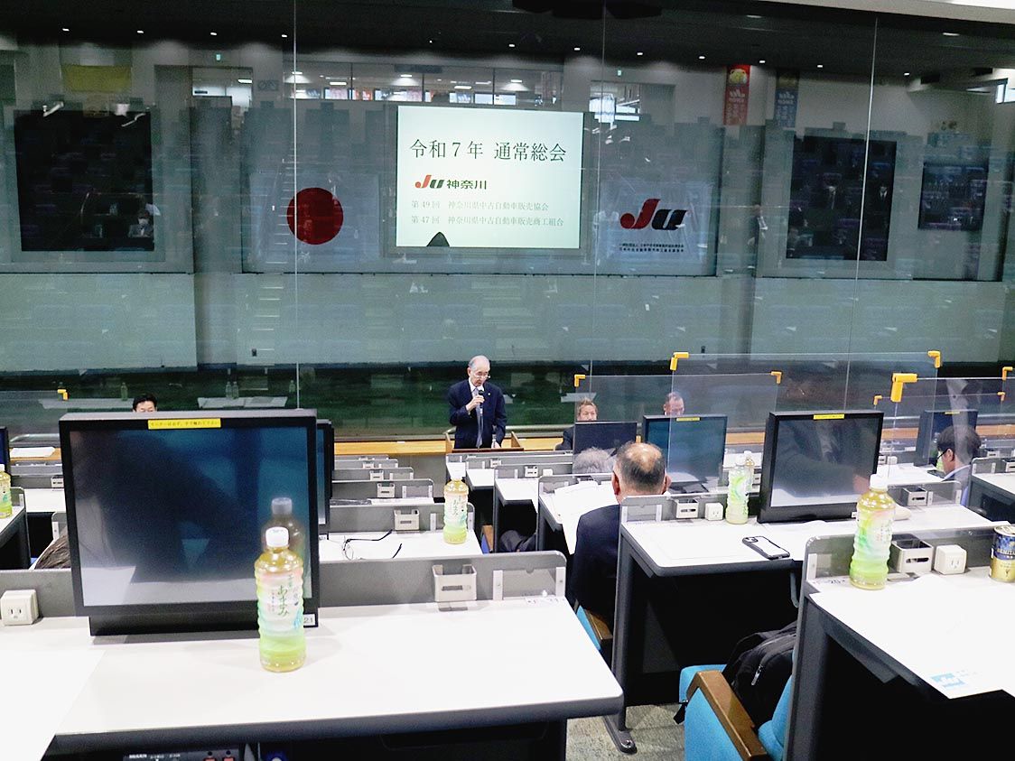 【横浜】神奈川県中古自動車販売協会・同商工組合(JU神奈川、鎌田政男会長・理事長)は、小田原市のオークション会場で通常総会を開催した。任期満了に伴う役員改選が行われ、鎌田会長・理事長と實方秀人、笠原祐太の両副会長・副理事長を重任。筆頭副会...