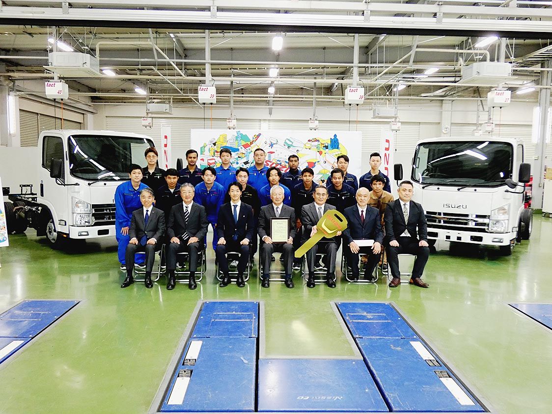 【水戸】茨城いすゞ自動車(豊﨑繁会長兼社長)は、つくば自動車大学校(細野晃一校長)で「実習教材車両寄贈式」を開き、小型トラック「エルフ」2台を寄贈した。 寄贈式には、豊﨑会長兼社長、細野校長をはじめ、関係者らに加え、学生も出席した。 式冒...