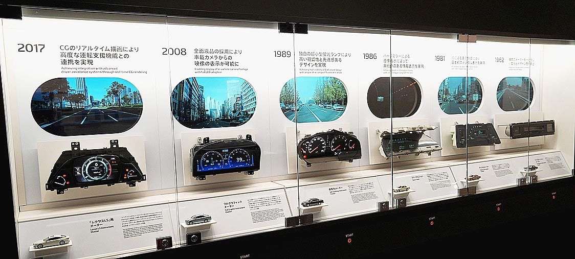 同社が生み出した世界初の製品や技術は180にも及ぶ。これらを壁面に掲げたプレートで紹介する。企画を担当した広報渉外部ブランド推進室の田中淳担当課長は「デンソーの精神が伝わる展示を心掛けた。QRコードやカーレースをテーマにした企画展など、随時更新することも検討する」と語った。