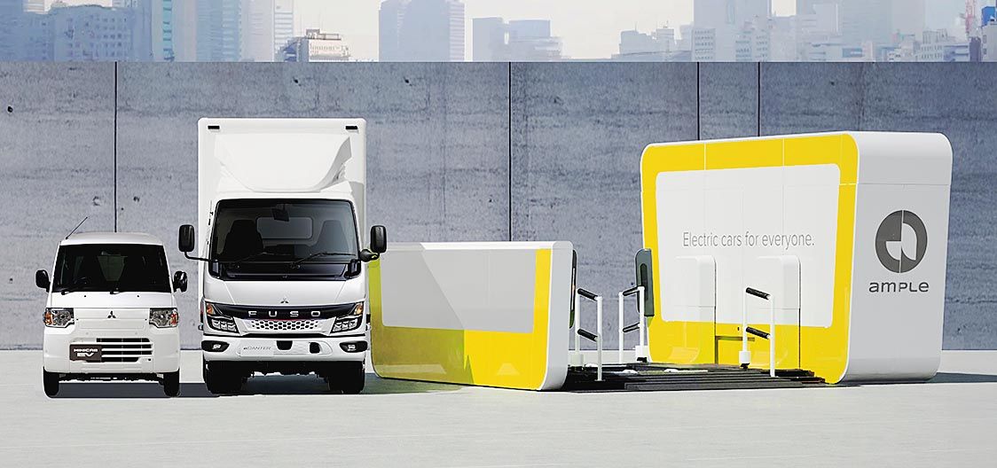 三菱自動車と三菱ふそうトラック・バスは、電池交換式電気自動車(EV)の実証を東京都内で9月から行うと発表した。ヤマト運輸、電池交換ステーション(ST)を手掛ける米アンプルとともに実施する。東京都環境公社の助成も受け、複数年かけて実用性を確かめる。