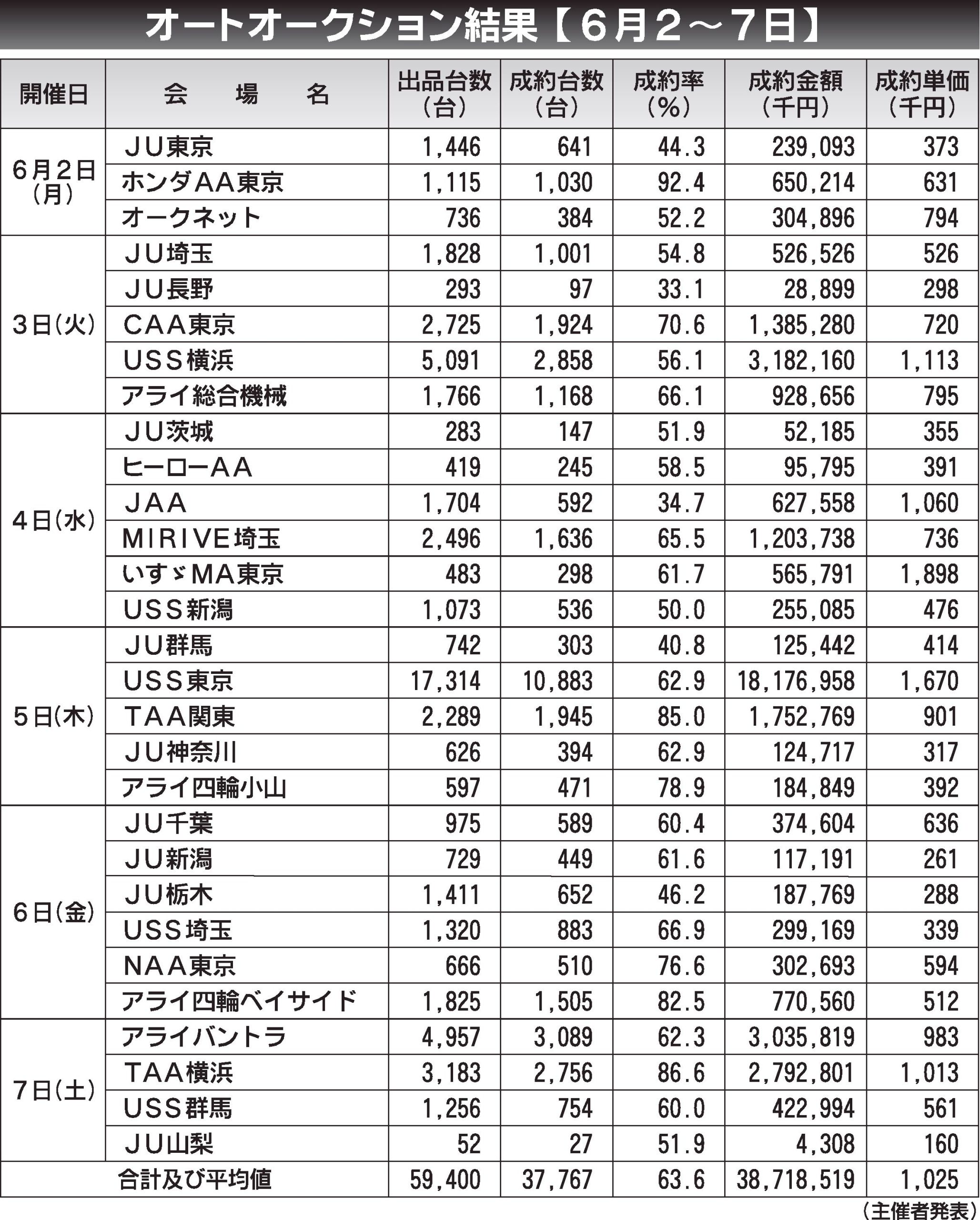 〈オートオークション結果〉首都圏 2025/6/2~7