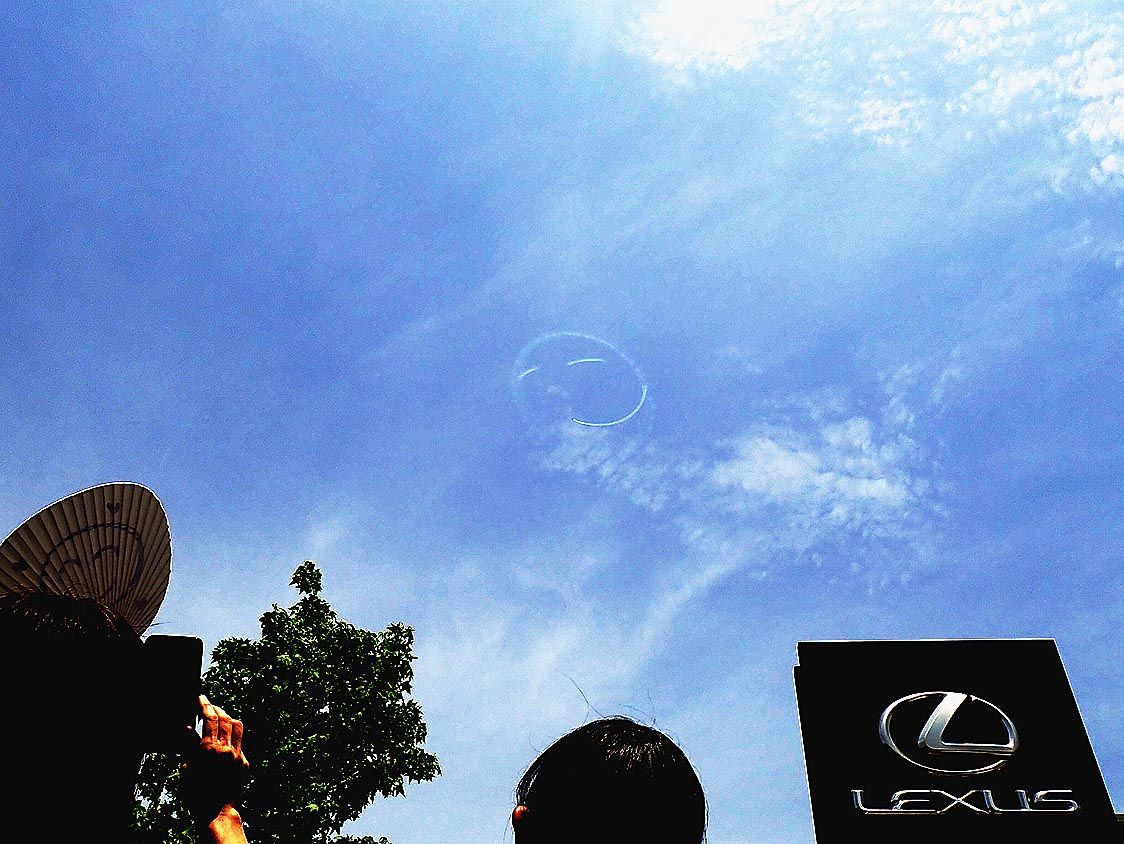 レクサス甲府で「大空を見上げよう」 飛行機でニコちゃんマーク