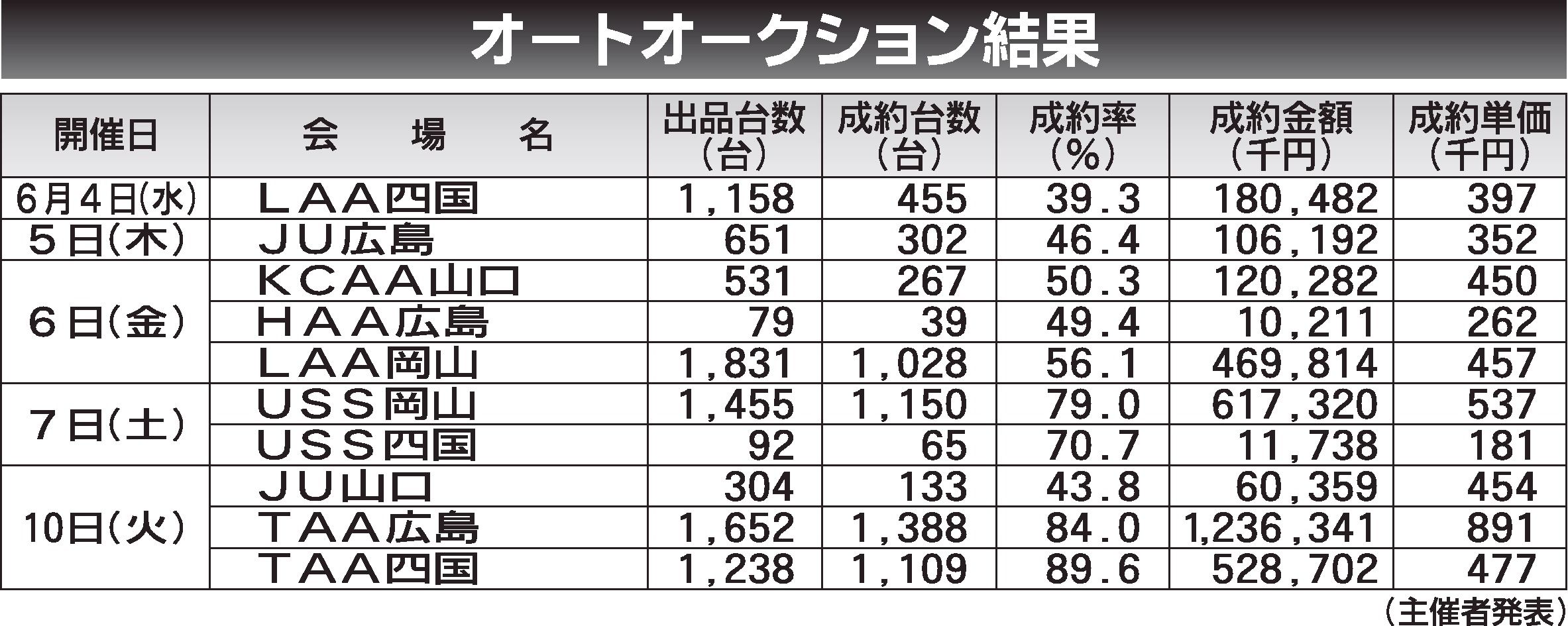 〈オートオークション結果〉中四国地区 2025/6/4~10