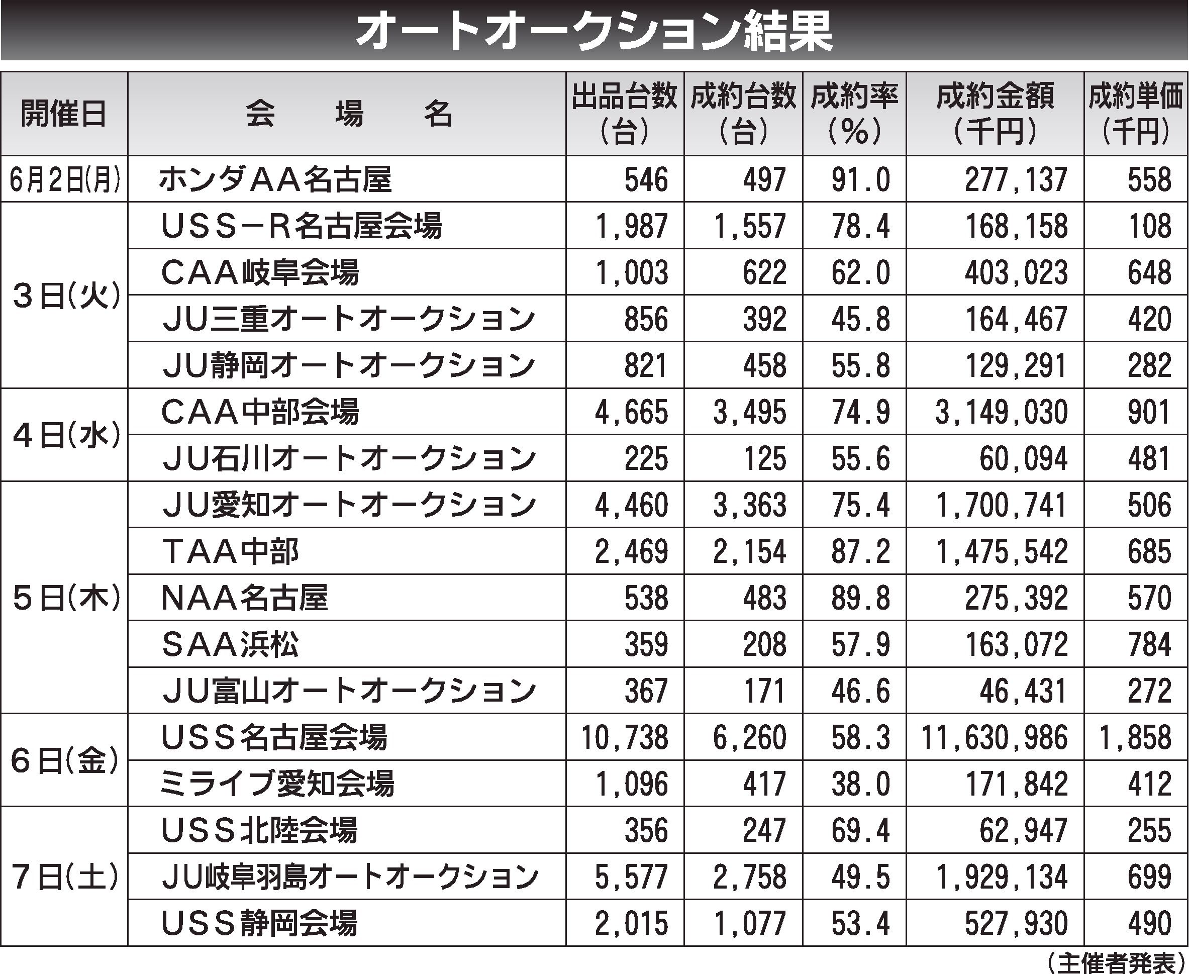 〈オートオークション結果〉中部地区 2025/6/2~7