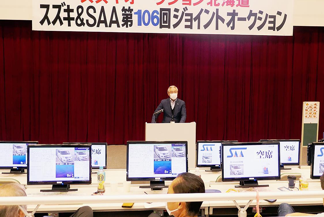 札幌オートオークション(SAA、土谷州治社長)は10日、スズキオートオークション北海道との合同中古車オークション(AA)「第106回スズキ&SAAジョイントAA」を開催した。人気の「スズキコーナー」は出品台数220台、成約台数170台、成...