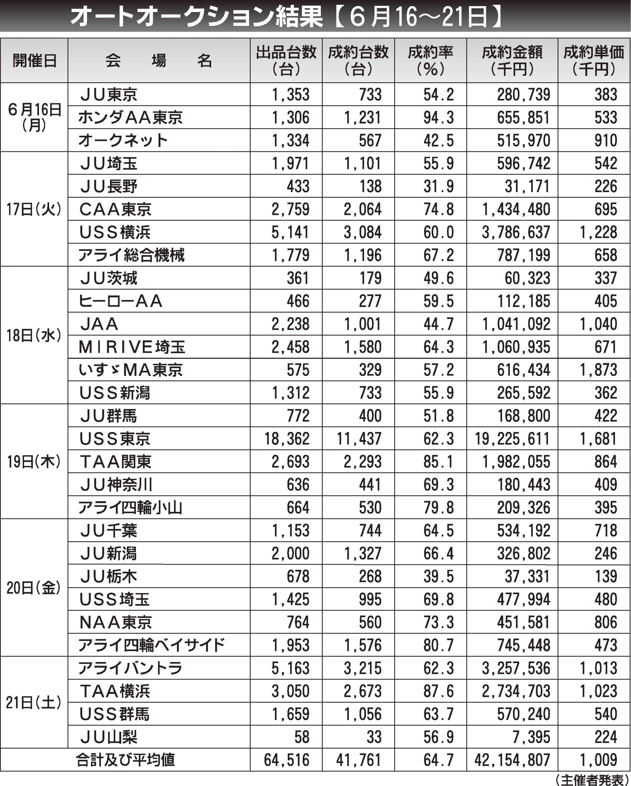 〈オートオークション結果〉首都圏 2025/6/16~21