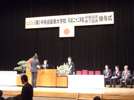 【千葉】中央自動車大学校(CTS、廣川萬里学校長)は11日、白井市の文化会館大ホールで「2010年度卒業証書・修了証書授与式」を行った。多数の来賓、父兄が見守る中、廣川学校長が時に在学中のエピソードを交えながら卒業生66人に卒業証書を、進...