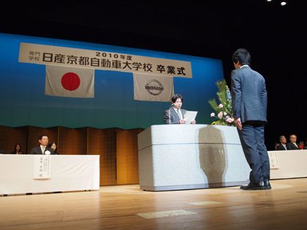 【京都】日産京都自動車大学校(井上浩一校長、久御山町)は17日、城陽市の文化パルク城陽で「2010年度卒業式」を行った。1級自動車工学科36人、自動車整備科194人、車体整備専攻科44人の計274人が卒業した。1級課程3年次への編入5人、...