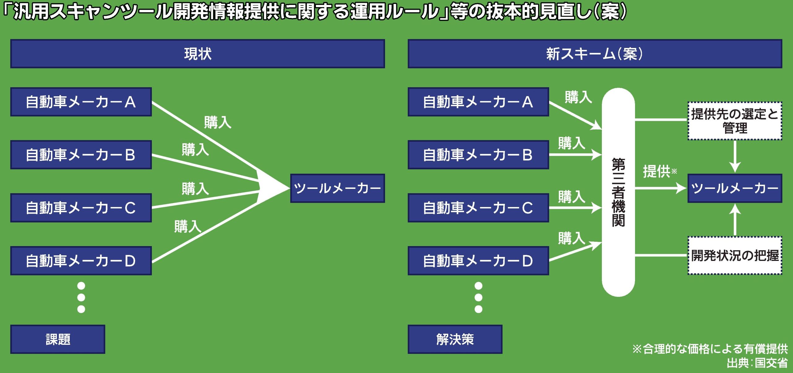 自動車技術の進展や整備士不足を踏まえ、官民でスキャンツール(外部故障診断装置)の在り方が検討されている。全国の認証工場のうち約8割を占める専業事業者の整備技術向上にはスキャンツールの高機能化が必要となるためだ。今後、専業者で対応できない作...