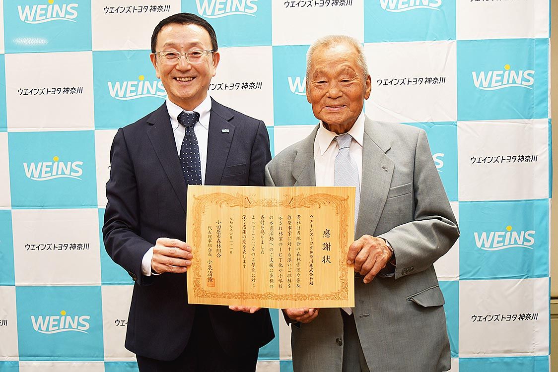 【横浜】ウエインズトヨタ神奈川(宮原漢二社長)は、小田原市森林組合(小泉清隆代表理事組合長)に「ウエインズまちいちファンド」の積立金500万円を寄付した。寄付金は、森林の整備・管理に使用するドローンの購入と小田原市内の小学校2校に対し寄贈...