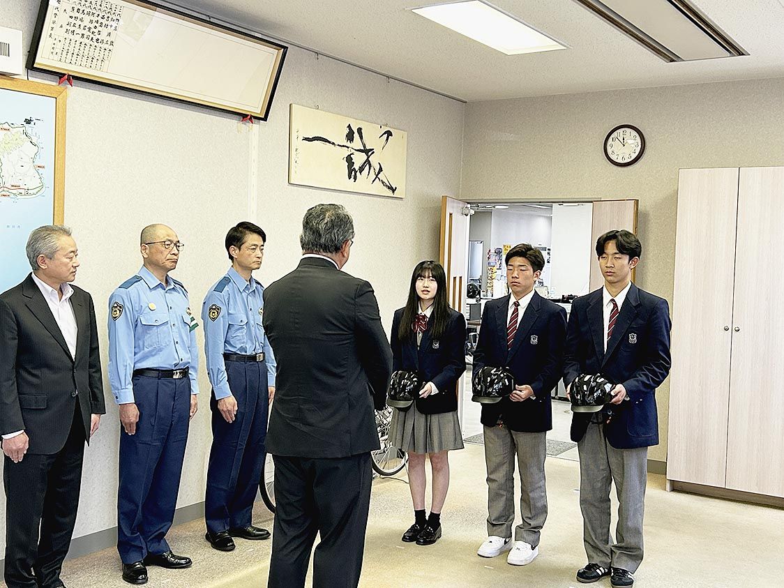 石川自販協など、自転車用ヘルメットを寄贈