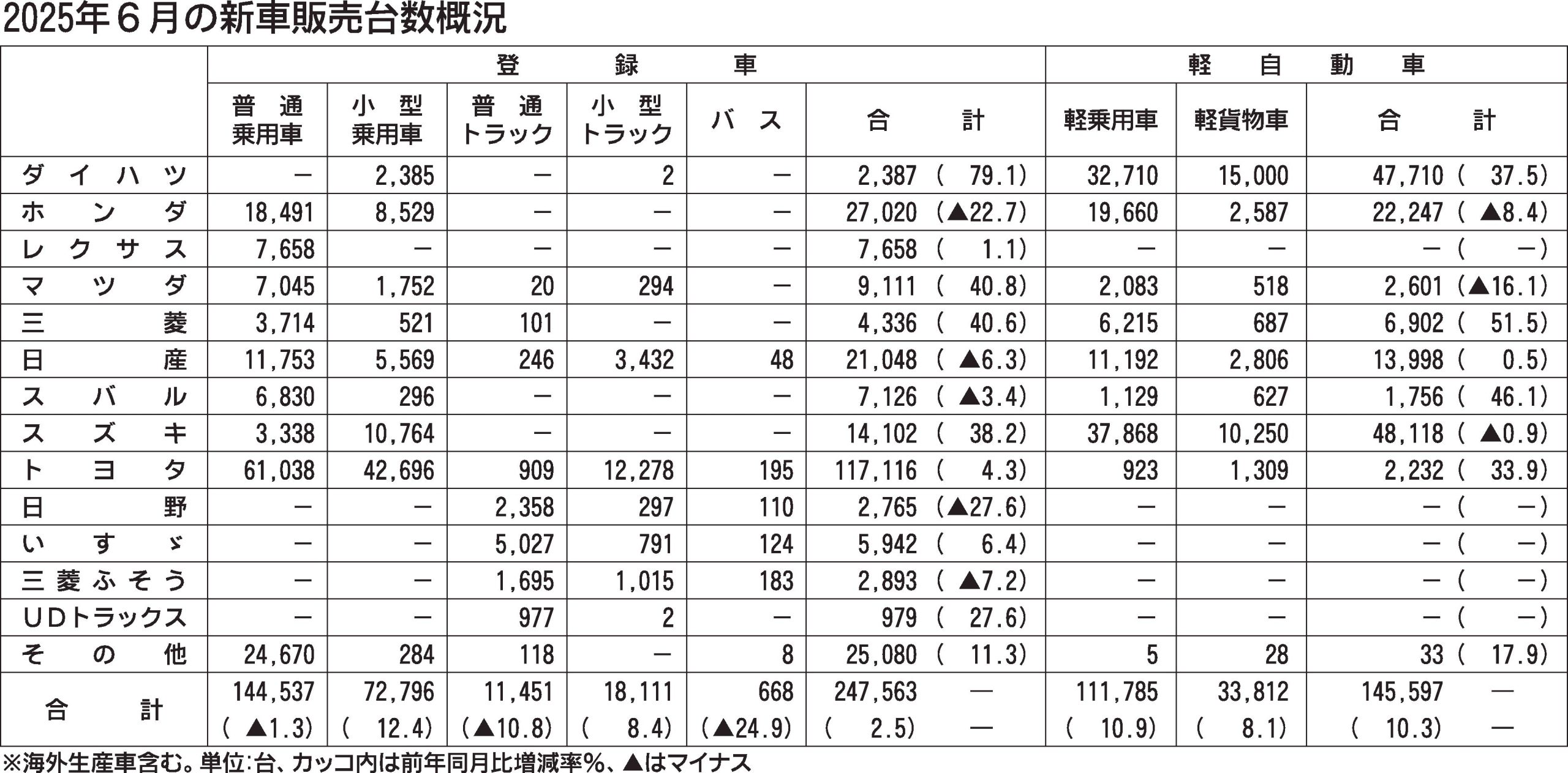 〈2025年6月の新車販売台数概況〉