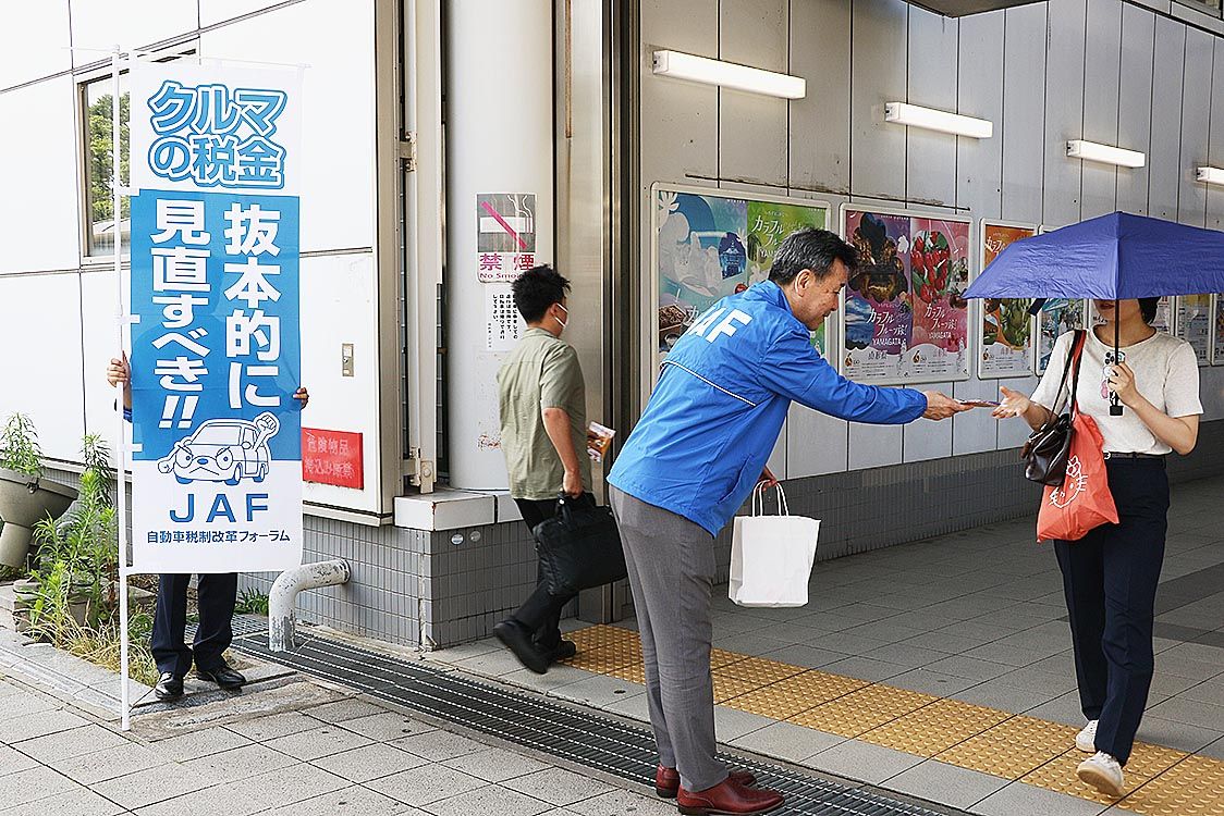 【仙台】日本自動車連盟(JAF)宮城支部(梅津行雄支部長)と自動車税制改革フォーラムは、仙台市宮城野区のJR陸前原ノ町駅前で、自動車関係諸税の負担軽減などを訴える街頭活動を実施した。 JAF宮城支部の梅津支部長と職員、宮城県自動車販売店協...