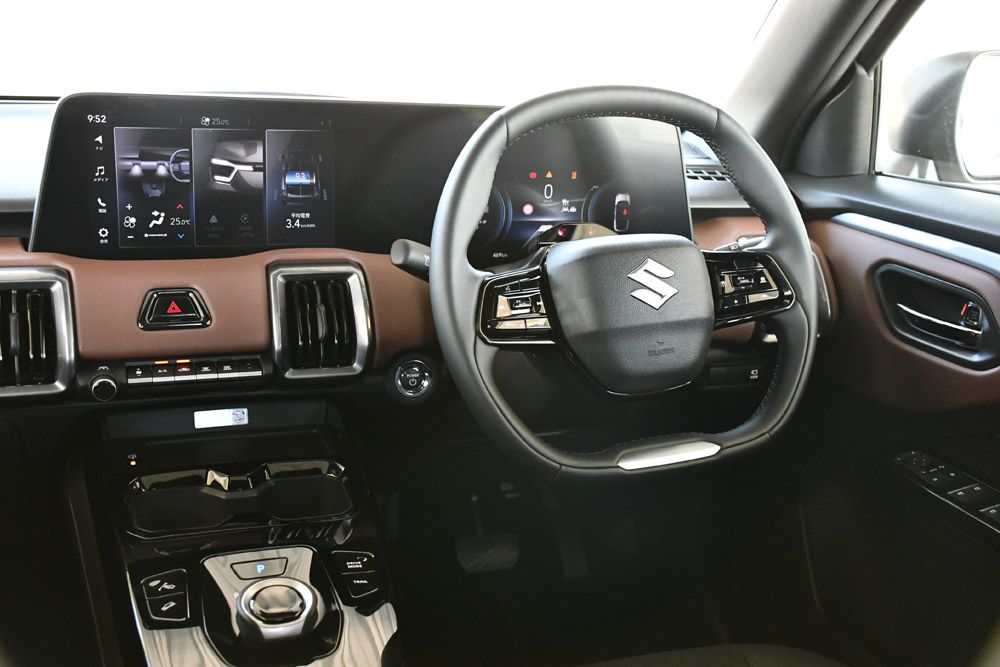 日本や欧州など降雪地域での利用を想定し、4WD「オールグリップe」も設定する。スズキの日本での4WD比率は2~3割程度だが、小野純生チーフエンジニアは「悪路だけでなく普段使いで魅力のある4WDに仕上げた」といい、eビターラを通じて4WD比率を高めていくことも視野に入れる。