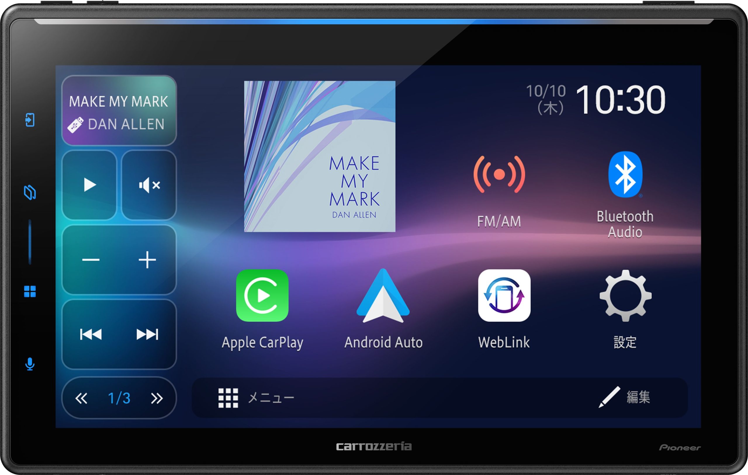 高精細な10.1インチ大画面ディスプレーによる視認性の高さやスマートフォンとの高い連携性能など、ディスプレーオーディオとしての基本性能を兼ね備えている。加えて、注目すべきは独自のイルミネーション機能「ルミナスバー」だ。音楽再生時にはリズムに合わせて光が躍動し、通話やナビ案内時には異なる点灯パターンでドライバーに情報伝達を直感的に行う。